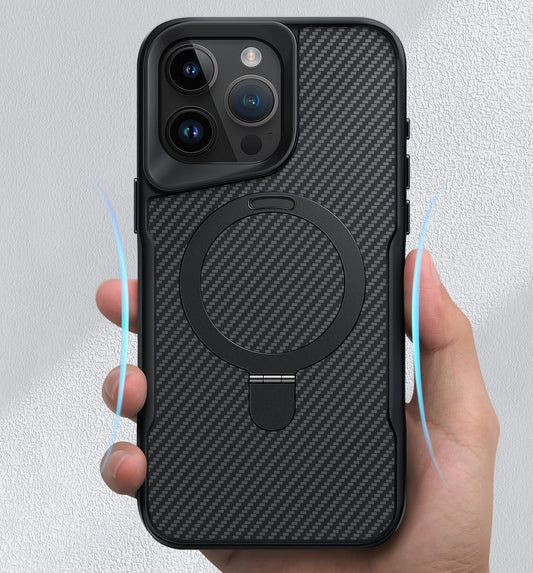 Luxury Magsafe Magnetic Built-in Stand Carbon Fiber Patterned Phone Case for iPhone